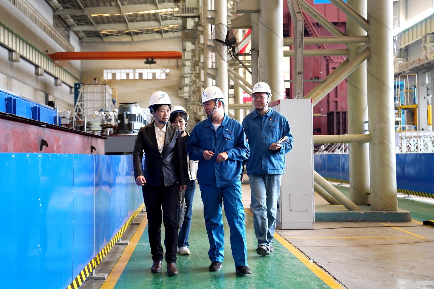 關(guān)明鑫一行走進(jìn)公司生產(chǎn)車間,與一線員工進(jìn)行了深入交流。