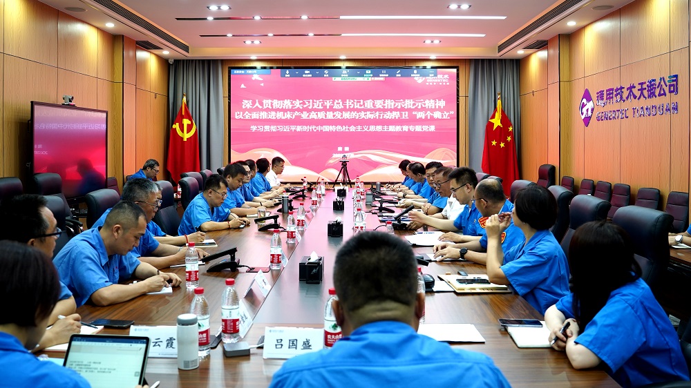 7月17日上午,集團(tuán)總工程師,機(jī)床公司董事長、黨委書記唐毅以《深入貫徹落實(shí)習(xí)近平總書記重要指示批示精神 以全面推進(jìn)機(jī)床產(chǎn)業(yè)高質(zhì)量發(fā)展的實(shí)際行動(dòng)捍衛(wèi)“兩個(gè)確立”》為主題講授主題教育專題黨課。專題黨課的主會(huì)場設(shè)在天鍛公司小淀廠區(qū),采用線上線下相結(jié)合的方式進(jìn)行。集團(tuán)主題教育第四指導(dǎo)組副組長吳越視頻參會(huì)指導(dǎo)。天鍛公司黨委書記、董事長劉國福主持會(huì)議。