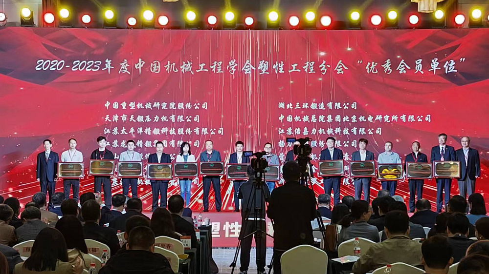 大會(huì)以“提高自主創(chuàng)新能力 扎實(shí)推進(jìn)產(chǎn)業(yè)基礎(chǔ)再造工程”為主題,邀請(qǐng)了多位院士參加并作主旨報(bào)告。大會(huì)鑒于天鍛公司近三年來(lái)在塑性成形領(lǐng)域推進(jìn)產(chǎn)學(xué)研用融合、開展科技創(chuàng)新等方面取得的突出成績(jī)以及對(duì)學(xué)會(huì)各項(xiàng)工作的大力支持,評(píng)選天鍛公司為2020-2023年度中國(guó)機(jī)械工程學(xué)會(huì)塑性工程分會(huì)優(yōu)秀會(huì)員單位。