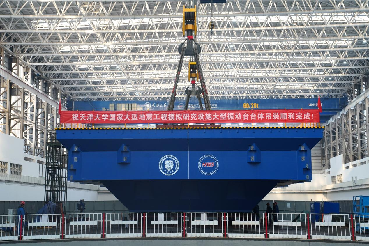 1月13日,天津大學地震大裝置大型振動臺臺體順利吊裝成功。公司領導劉林志、張敬波、劉玉民,首席專家馮永平帶隊赴項目現(xiàn)場指導工作。