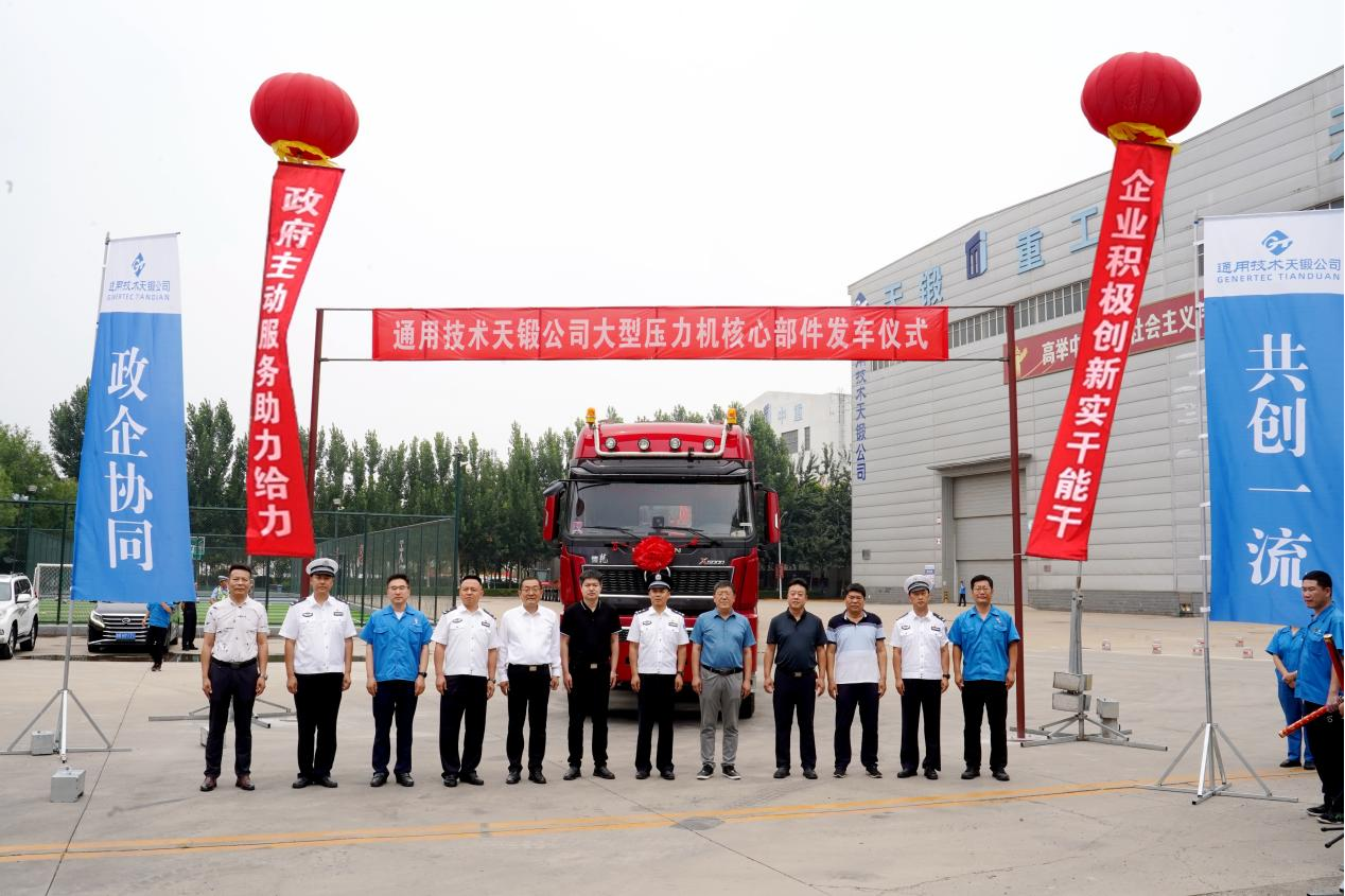 7月1日,公司舉行大型壓力機核心部件發(fā)車儀式,向黨的103周年華誕和公司68歲生日獻(xiàn)禮。天津市公安交管局副局長馮國勝、交通運輸委政務(wù)服務(wù)處處長趙自金、交通運輸委設(shè)施管理處二級調(diào)研員唱潤好,北辰區(qū)委常委、組織部長郭海,北辰區(qū)副區(qū)長兼公安局長李暉等有關(guān)領(lǐng)導(dǎo)及公司在津領(lǐng)導(dǎo)、員工代表、媒體朋友共同見證了這一重要時刻。