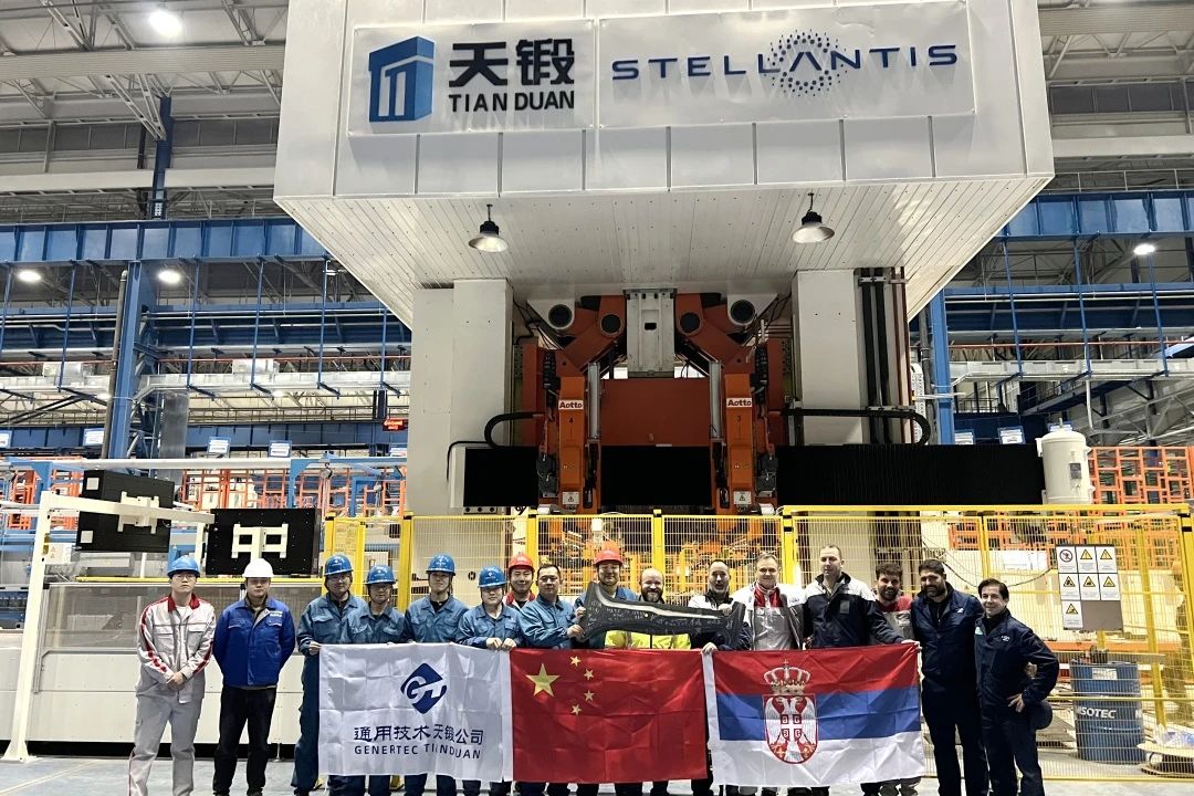 當(dāng)?shù)貢r(shí)間12月2日,天鍛公司為全球第四大汽車制造商Stellantis集團(tuán)提供的第6條12000kN復(fù)合驅(qū)動(dòng)熱成形壓力機(jī)自動(dòng)化生產(chǎn)線實(shí)現(xiàn)了首件試制成功,現(xiàn)場(chǎng)安裝調(diào)試工作僅僅用時(shí)26天!刷新了公司海外訂單的交付記錄,展示了公司在高端裝備制造領(lǐng)域的技術(shù)能力和管理能力,凸顯了中國制造業(yè)在國際舞臺(tái)上的強(qiáng)大競(jìng)爭(zhēng)力。