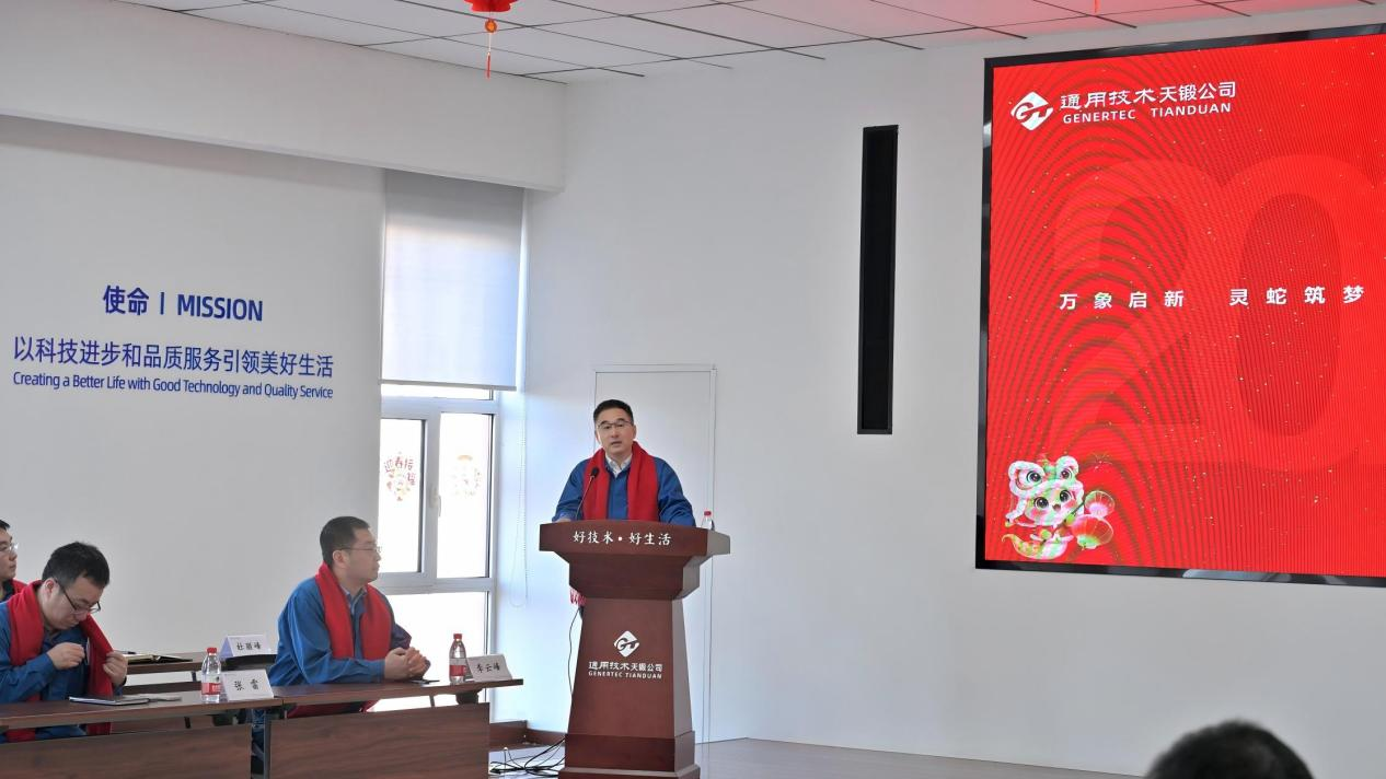 公司董事長、黨委書記劉國福代表公司黨委和領(lǐng)導(dǎo)班子作開工動員講話。他指出,一年之計在于春,人勤春來早。乙巳新春團拜會暨開工動員會是公司2025年“新春第一會”,我們吹響沖鋒號,開啟新一年的奮進征程。