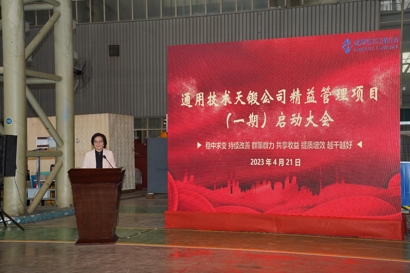 愛波瑞公司董事長(zhǎng)王洪艷女士出席大會(huì)并致辭,同與會(huì)人員分享了自己多年從事精益管理咨詢工作的心得,指出精益管理是制造業(yè)高質(zhì)量發(fā)展的必由之路,也是天鍛公司創(chuàng)建世界一流專業(yè)領(lǐng)軍示范企業(yè)的必由之路。