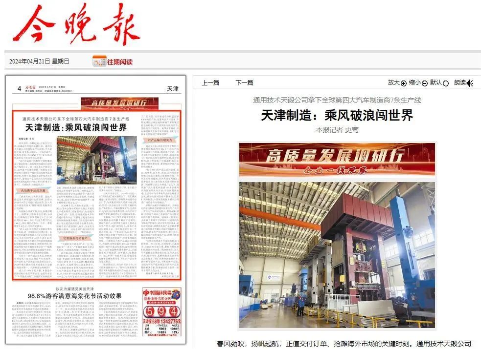 《今晚報(bào)》大版面報(bào)道了公司贏過(guò)諸多知名世界級(jí)對(duì)手,拿到全球第四大汽車制造商7條熱成形生產(chǎn)線訂單,乘風(fēng)破浪闖世界背后的故事。